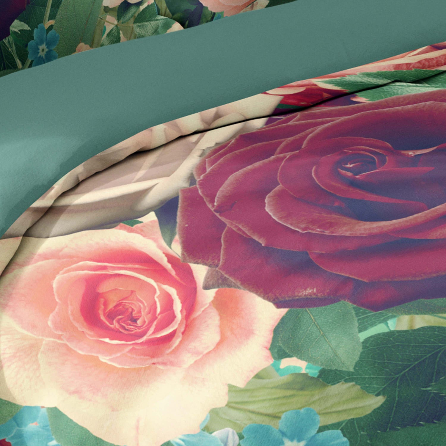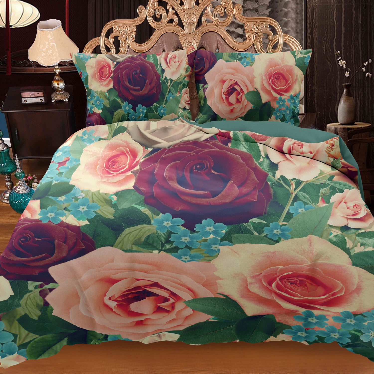 The beautiful blooming rose is printed on this bedding set that gives your a relaxed feeling when you enter the room.