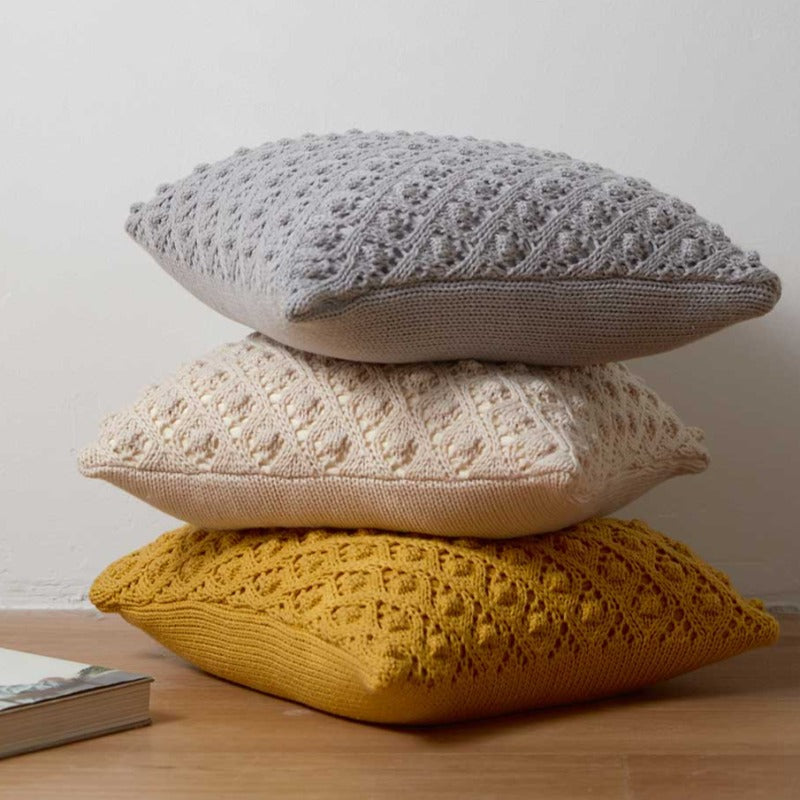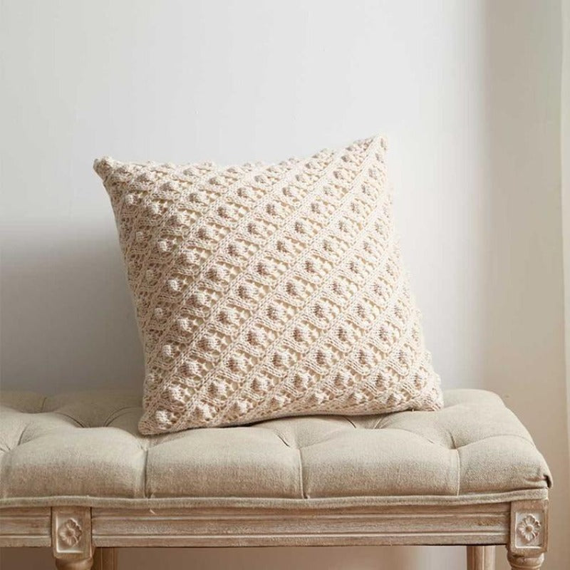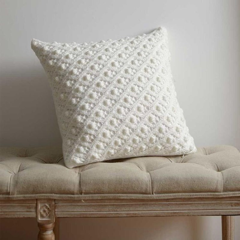Offering luxurious texture with a sophisticated Swiss dot and lattice accent that is reminiscent of a chic Alpine ski resort, our Bouclé Knit cover is beautifully woven of soft yarns that create a subtle contrast of color with a delicate depth of detail. Available in a range of neutrals and "new neutrals" that boast tone-on-tone color, this piece layers easily with any décor or pillow collection. It's the best choice in comfort, bringing Scandinavian Hygge style to your sofa, chair or bed, throw it anywhere for a casual injection of contemporary hue and classic texture.