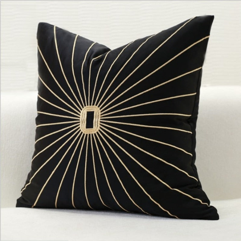 Elevate the call of the wild in your home by creating a fiercely refined space that radiates animal magnetism with this glamorously golden and oh-so sleek collection of pillow covers. The satiny black backdrop of the Gilded Leopard and Radiant Keyhole covers bring rich sophistication to any soft furnishing collection. The chic-yet-whimsical embroidered jungle cat will put a smile on any face while the complementary Radiant Keyhole embroidery serves big Art Nouveau vibes. Clean, tailored seams finish these go-with-everything covers.