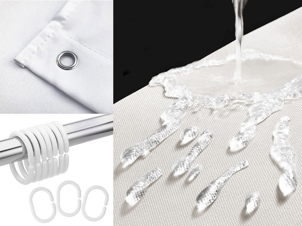 ·12 standard C-shaped plastic curtain hooks included and you may also choose metal hooks with extra fees.