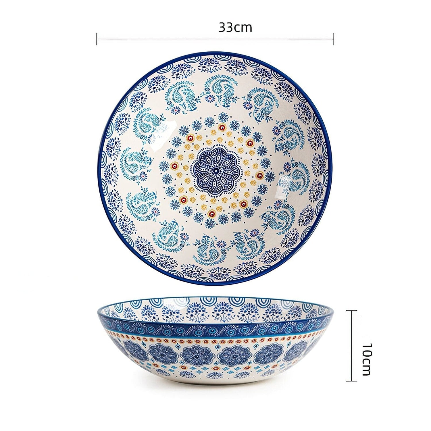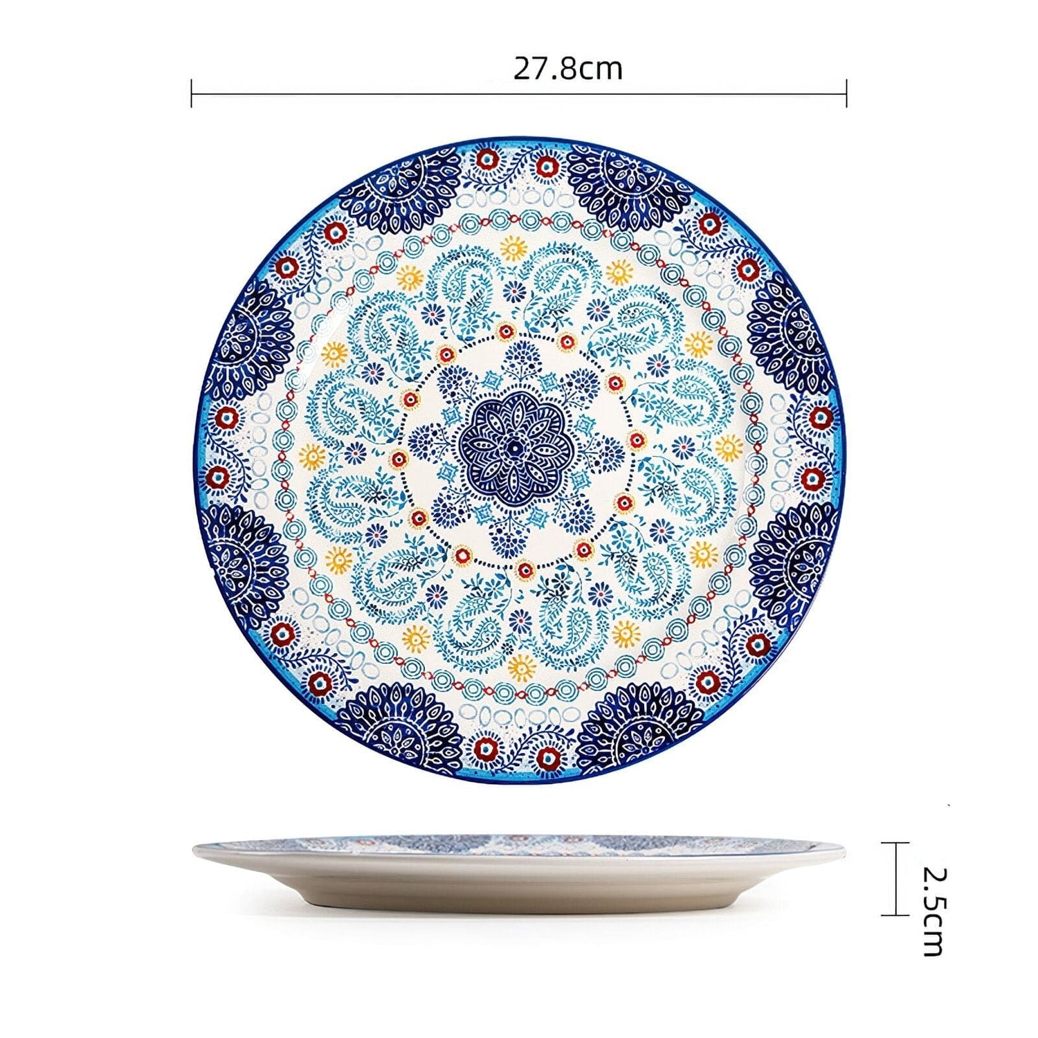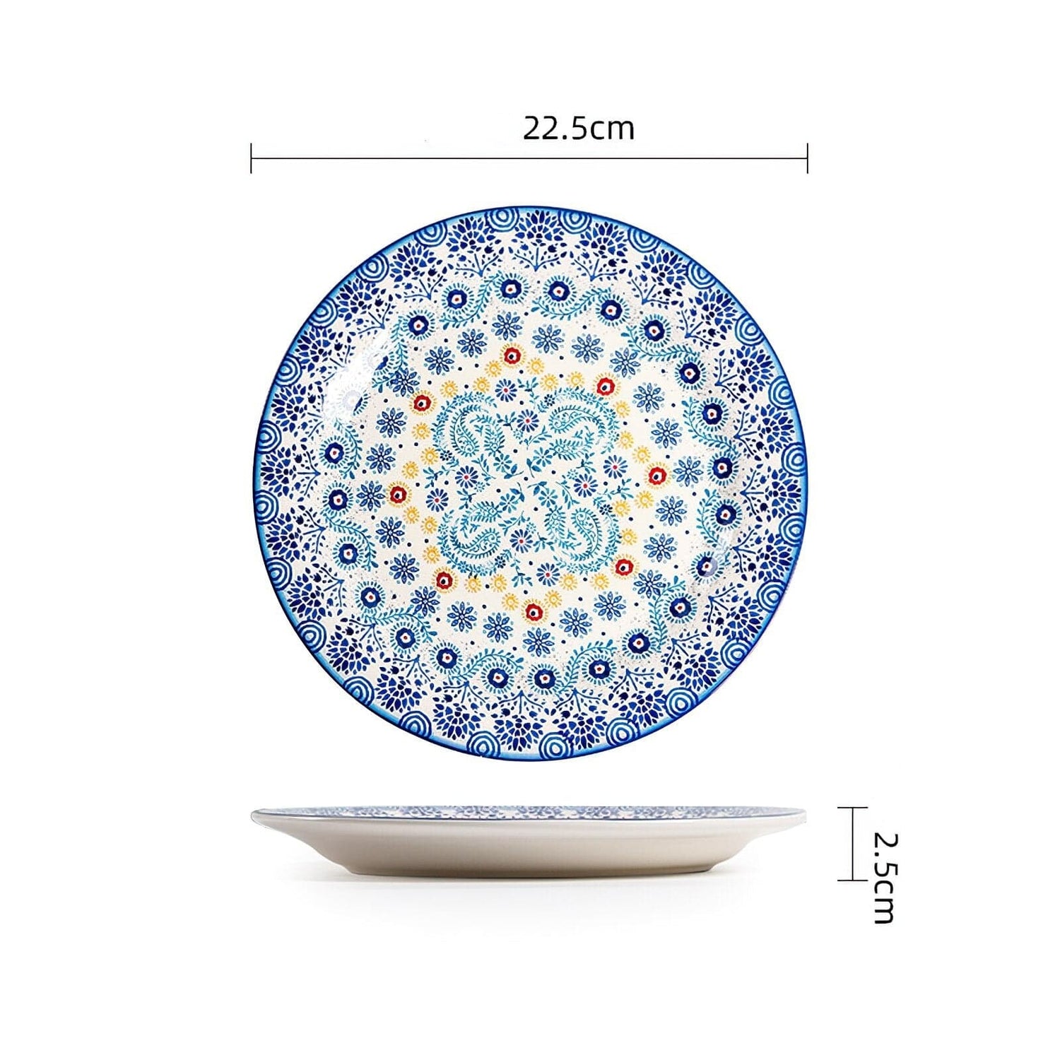 Add a touch of class to your daily meals with the Bohemian Ceramic Tableware Set. These functional pieces feature a creamy white background with beautiful mandala and paisley designs all-over, and a lovely ocean inspired color.
