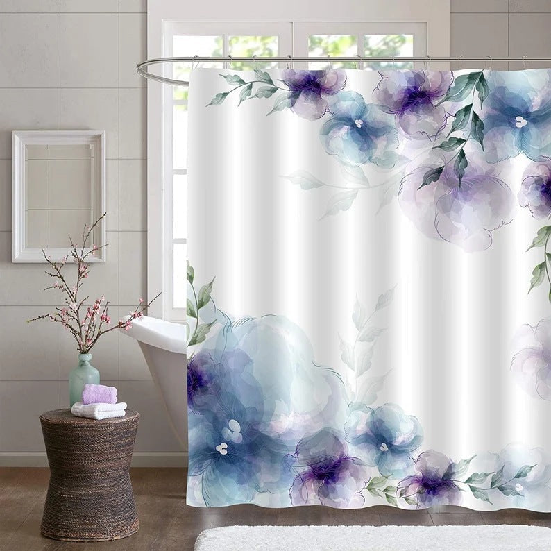 Blue and Purple Flower Shower Curtain, Floral Waterproof Curtain Decor, Unique Bathroom décor, Boho Shower Curtain, Customized Bathroom Curtains, Extra Long Shower Curtain