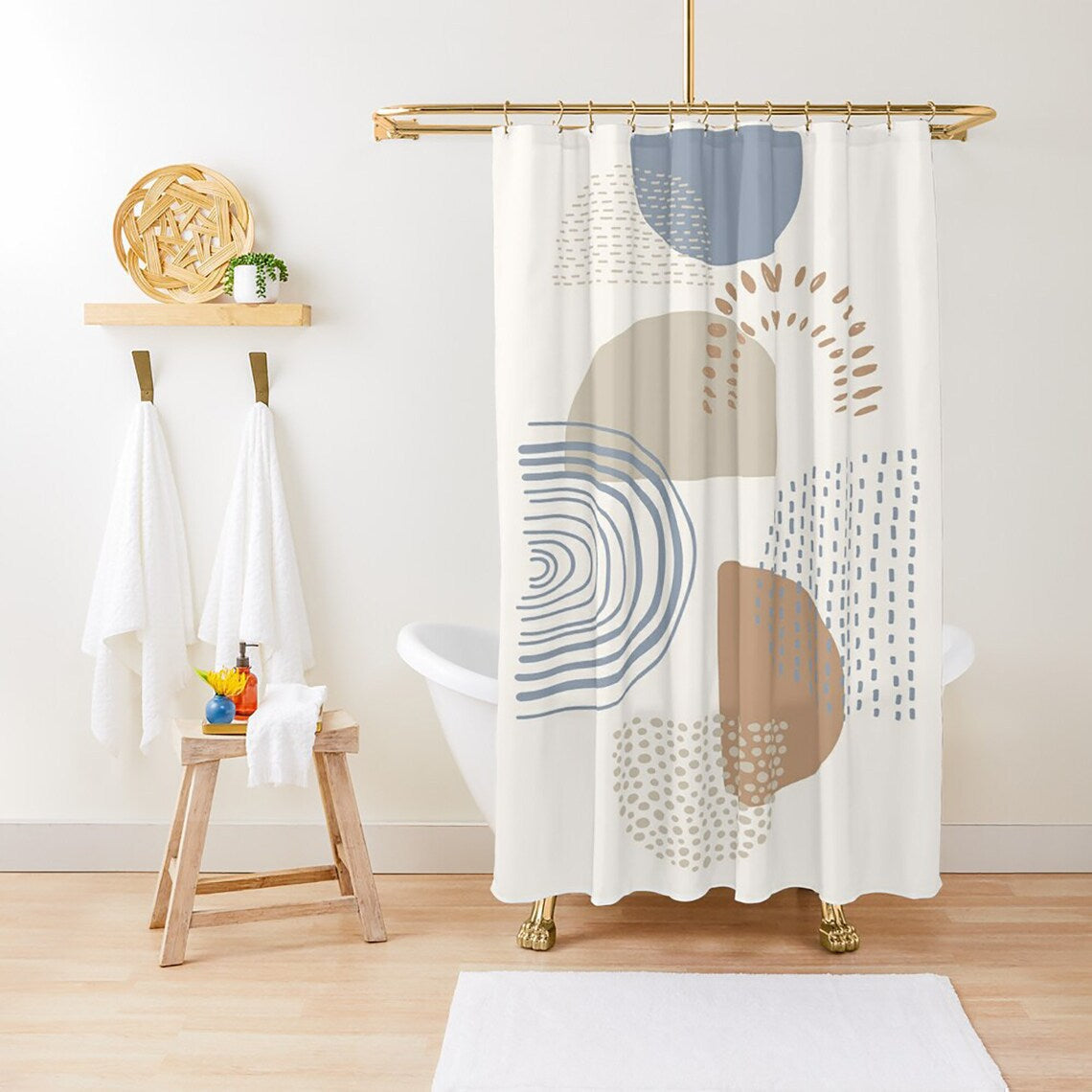 Blocks and Dot Art Shower Curtain, Abstract Waterproof Curtain Decor, Unique Bathroom décor, Boho Shower Curtain, Customized Bathroom Curtains, Extra Long Shower Curtain