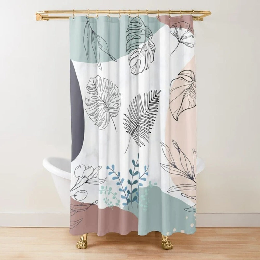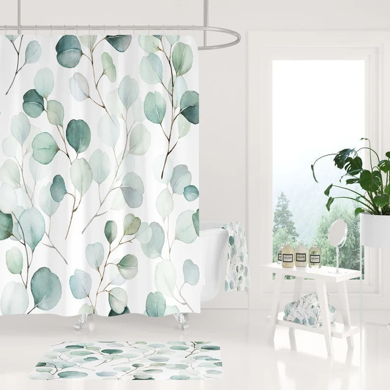Art Water print Green Leaves Shower Curtain, Floral Waterproof Curtain Decor, Unique Bathroom décor, Boho Shower Curtain, Customized Bathroom Curtains, Extra Long Shower Curtain