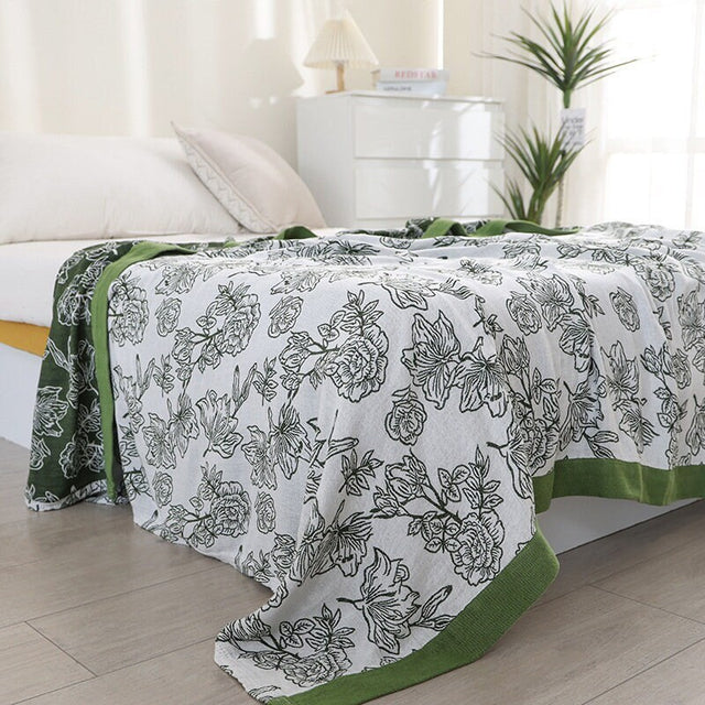 Floral Jacquard Blanket Throw Bed Cover Decor , Cotton Bamboo Bed Throw Blanket, Housewarming gift.