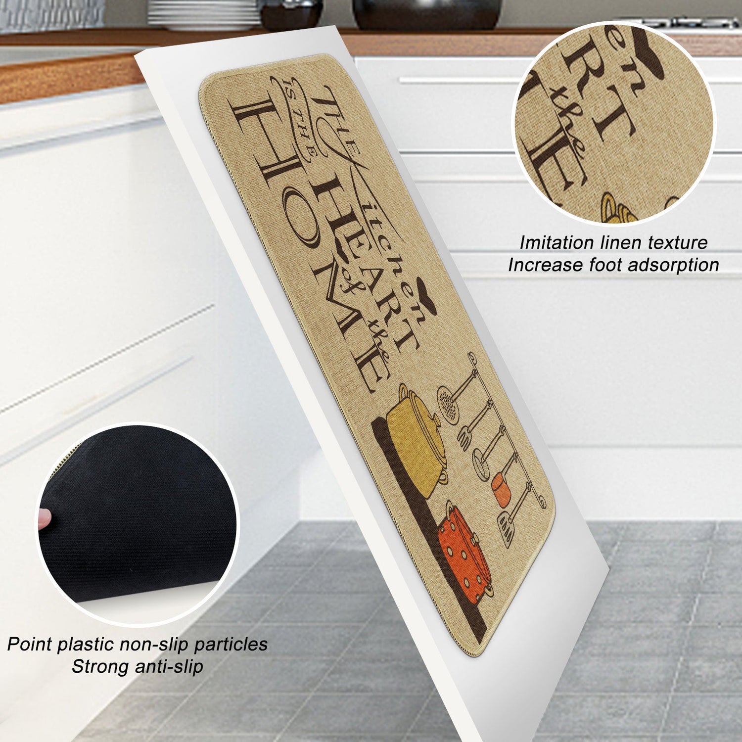 This kitchen door mat are made of high quality materials for comfort and durability.