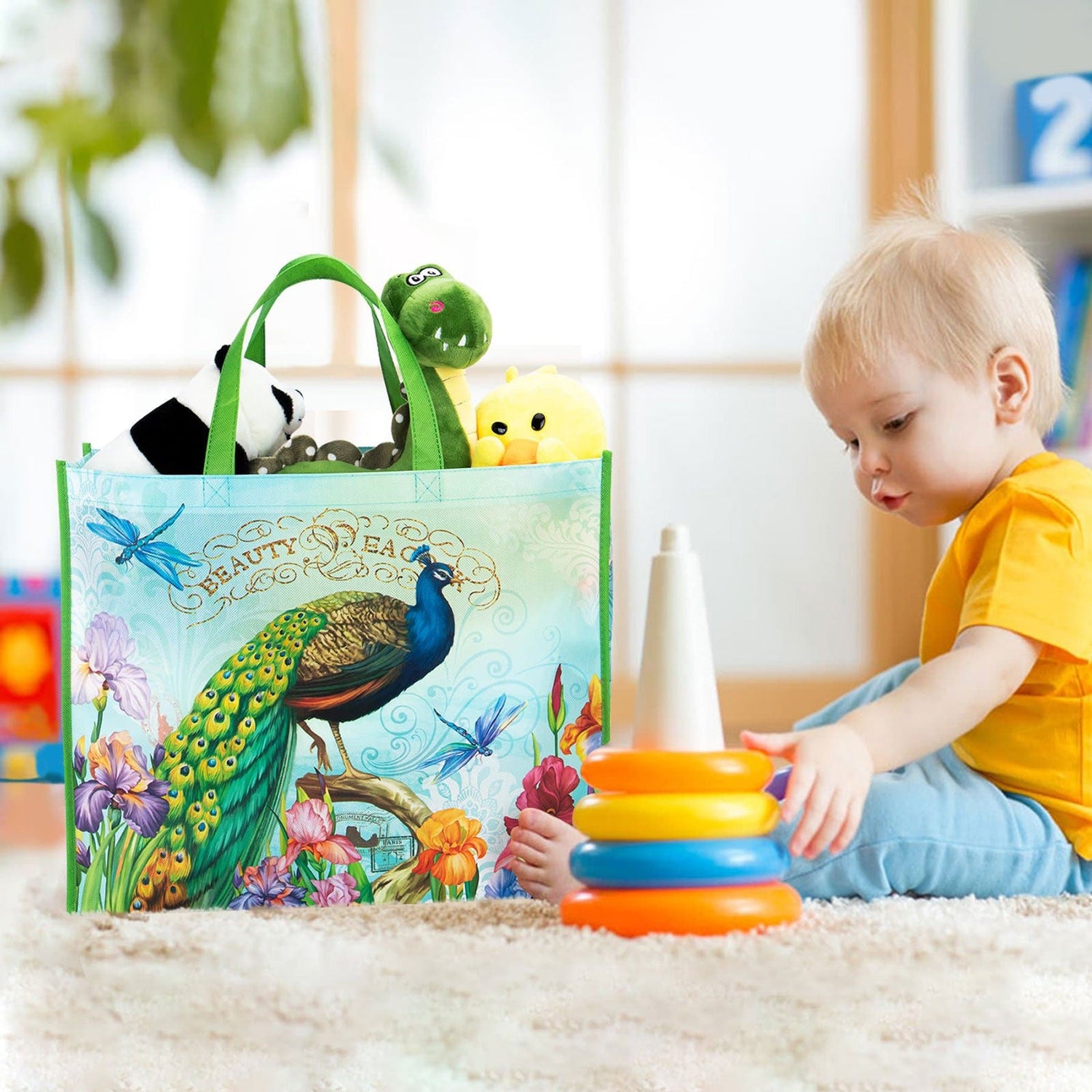 Unique Design: The patterns of NymphFable shopping bags are designed exclusively. Colorful peacocks and dragonflies surrounded by flowers, this fashion and noble style makes our shopping bag a perfect Christmas gift for women and girls or used as a storage bag at home on Christmas or another day.
