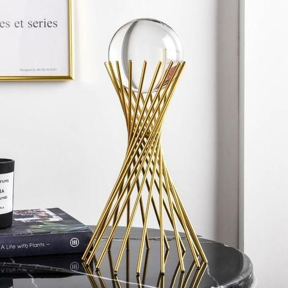The crystal ball gets a modern update with these gazing sphere statues. The clear ball is nestled in a modern stand that gives the gazing sphere a dramatic look. Group them together for a bold look of modern elegance.