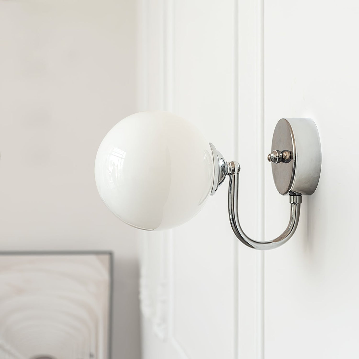 With its glass globe shade and rounded hardware, this one-light sconce is a minimalist take on classic mid-century lighting. It’s built from iron + suitable for use in bedroom locations,. Install it with a dimmer switch for easily adjustable ambiance.