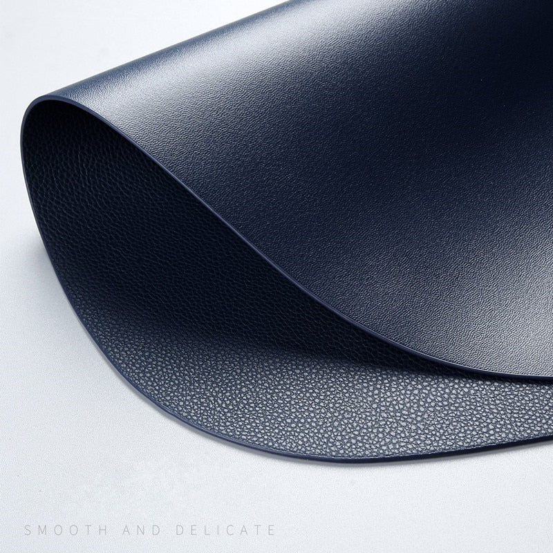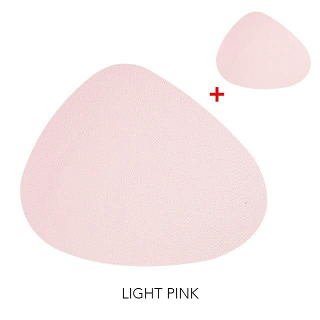 This placemat set features round triangle shapes and coasters made from durable faux leather. A modern and stylish addition to any table, this set is perfect for everyday use or special occasions.