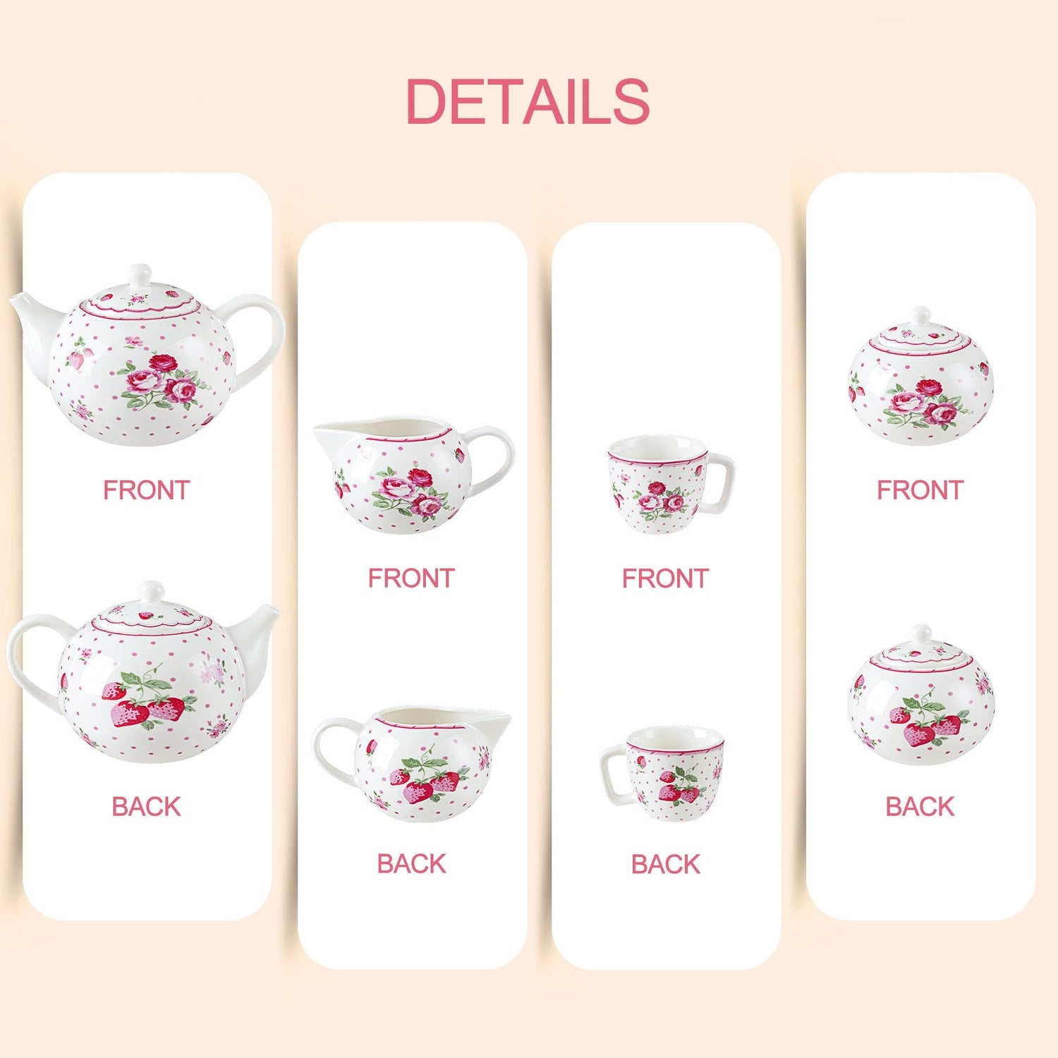 GOOD IDEAL GIFT: Our afternoon tea set is made of high-quality porcelain, 100% lead-free, and it is safe as a gift. Role playing tea sets can improve imagination and communication skills. It is a great gift for Birthday, Holiday, Christmas, Children's Day, New Year, Anniversary.
