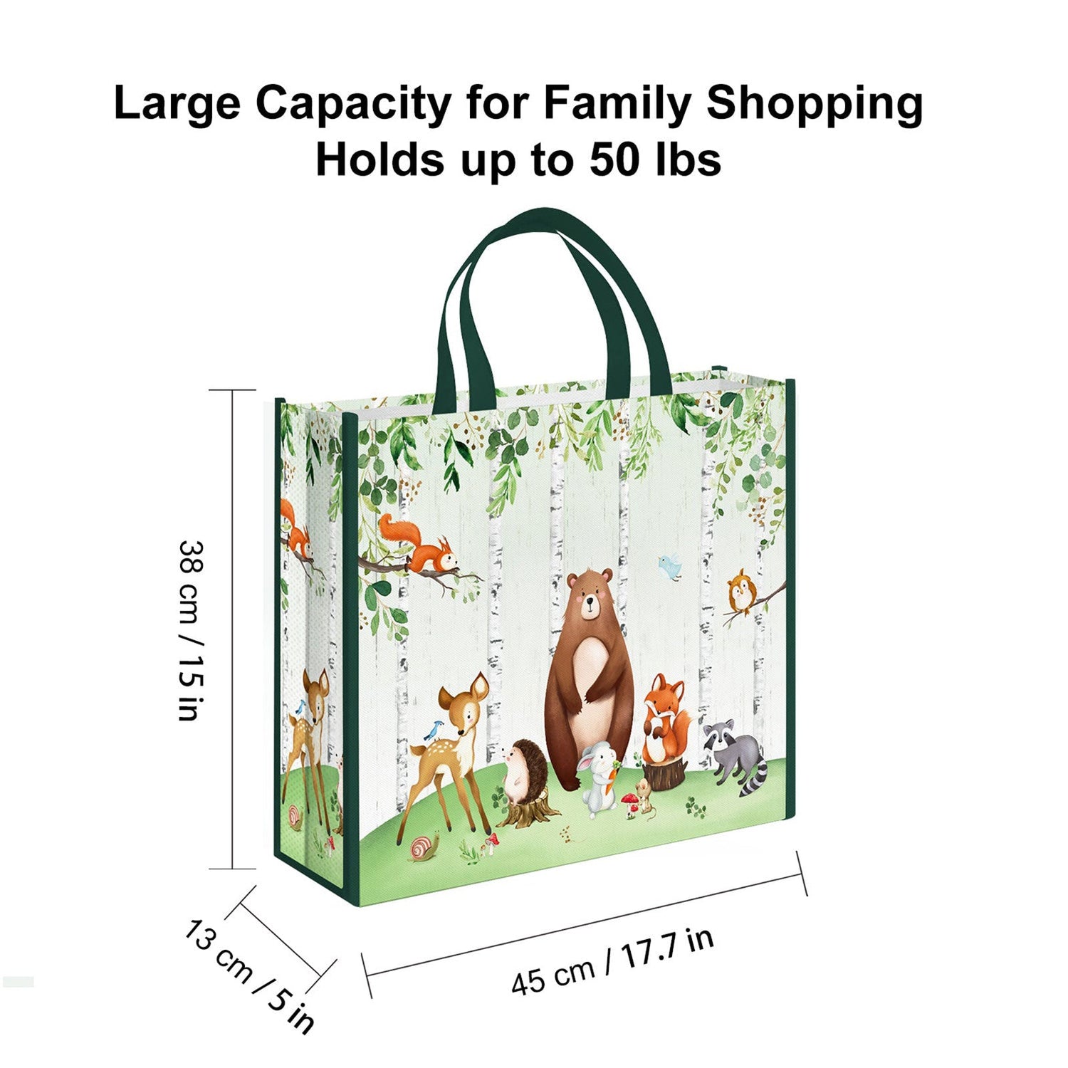 Made of non-woven, these grocery bags are well stitched, wear-resistant, strong, and durable enough to hold more than 50 pounds, long sturdy handles allow for hand holding or carry on the shoulder. Ideal for shopping, groceries, travel, storage.