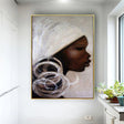 Embrace the regal beauty of this hand painted canvas. This elegant woman gives any space a look of bold sophistication. This painting will give any space an art gallery feel.