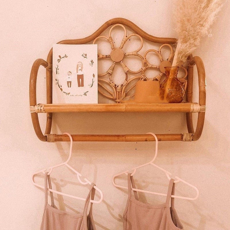 About: Add charm and playfulness to your space with this rattan towel shelf featuring daisy accents.