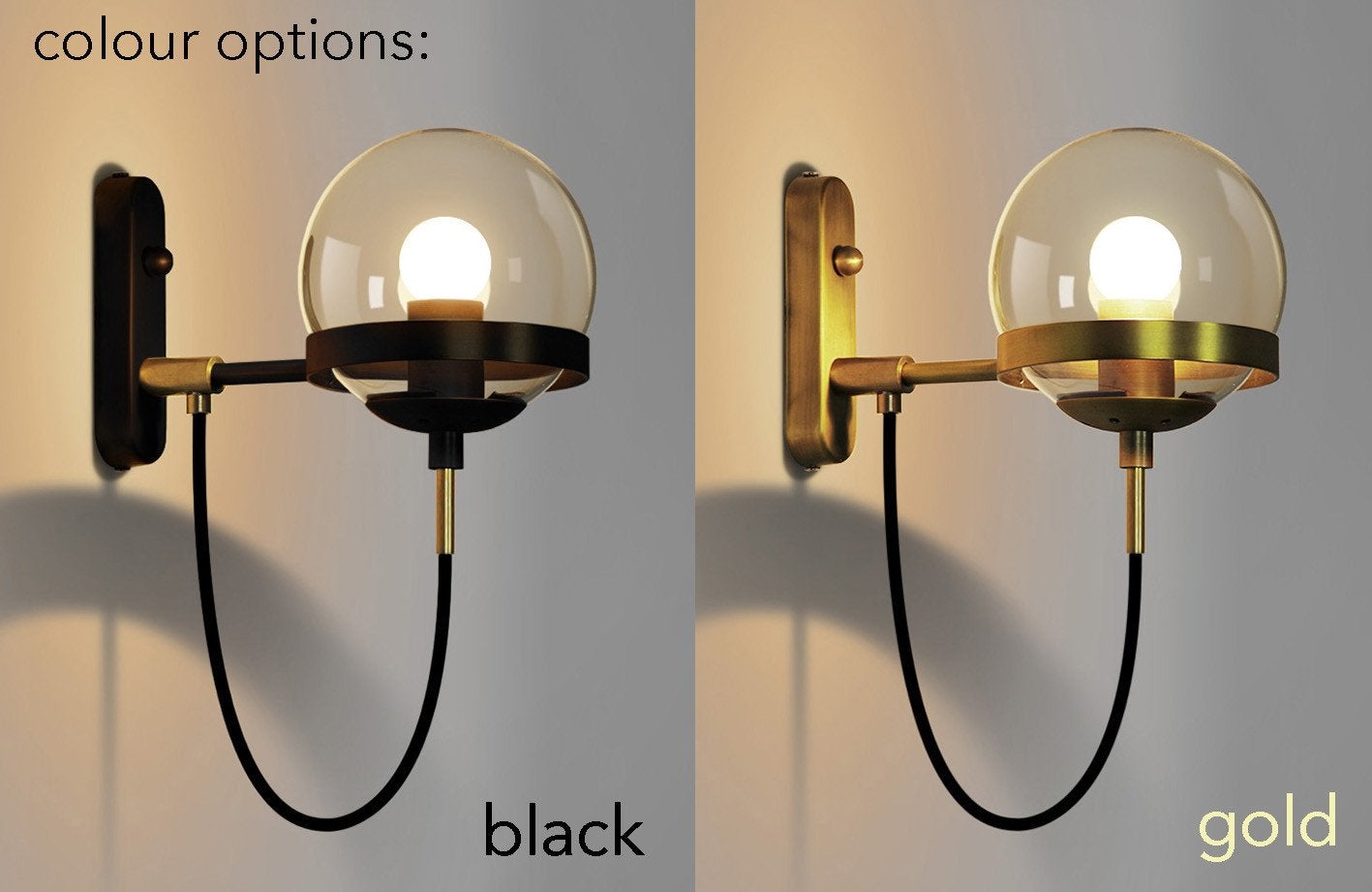 This wall light features a unique glass orb on a ring. The design alludes a minimalist art deco elegance that is sure to be a outstanding statement piece in your space.