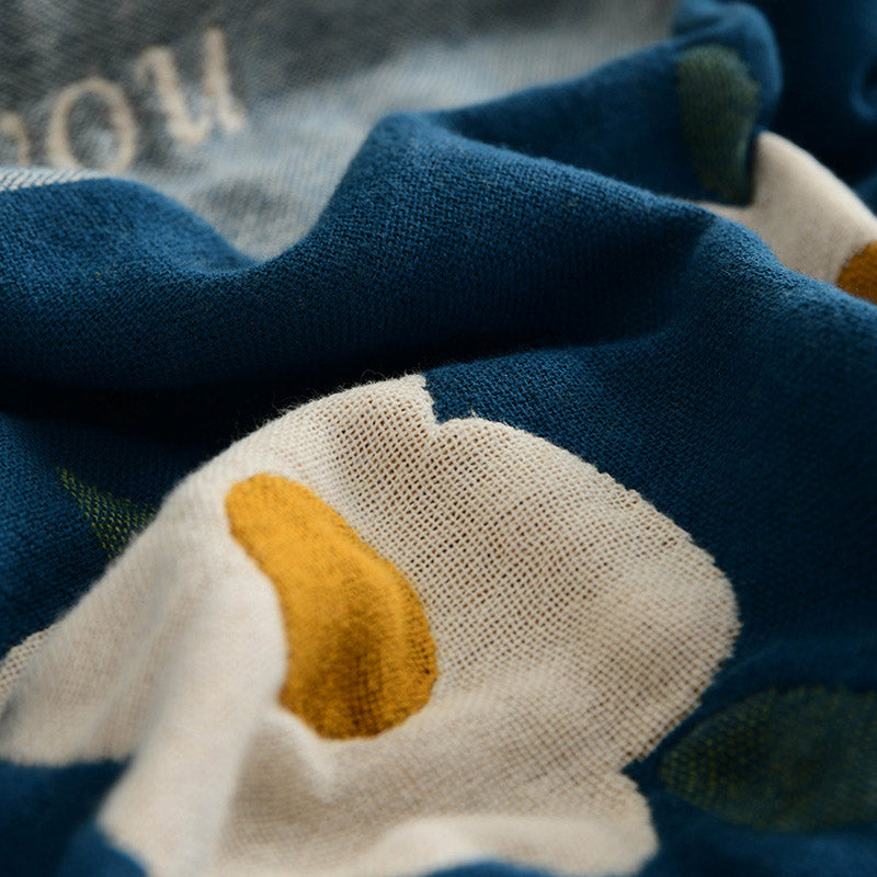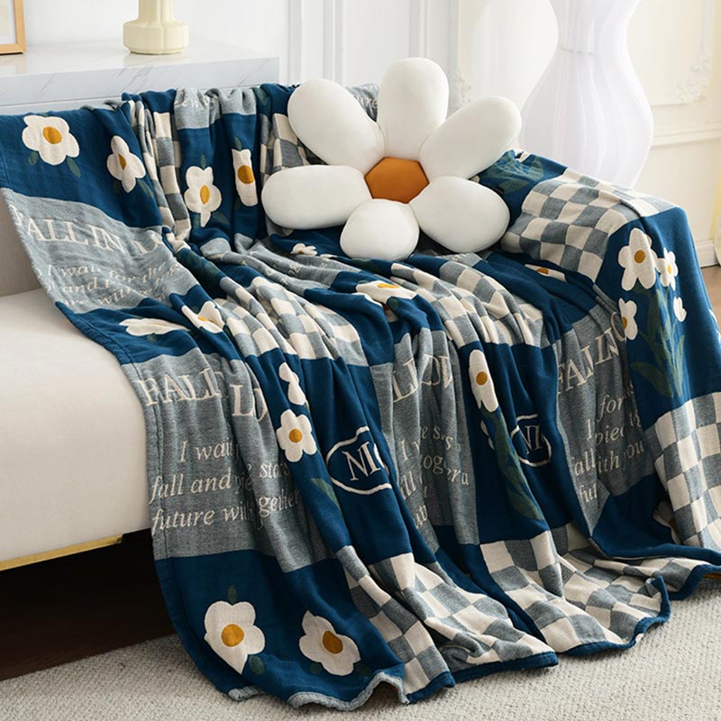 Reversible double side design, which adds reliable strength for use and wash. Adopted with reactive printing and jacquard technology. This quilt is suitable as a daily blanket for summer or bedsheet on your bed. It also can be used as an air conditioning blanket, airplane blanket, bedside towel, sofa blanket, or shawl blanket.