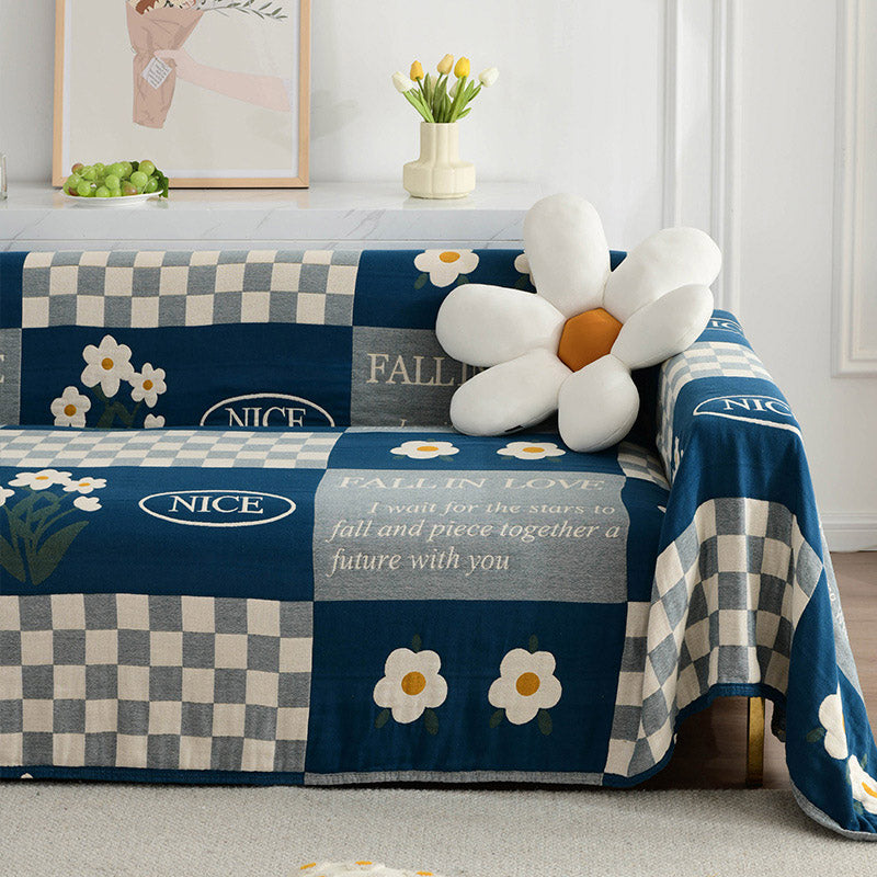 "FALL IN LOVE" Flower Plaid Reversible Quilt