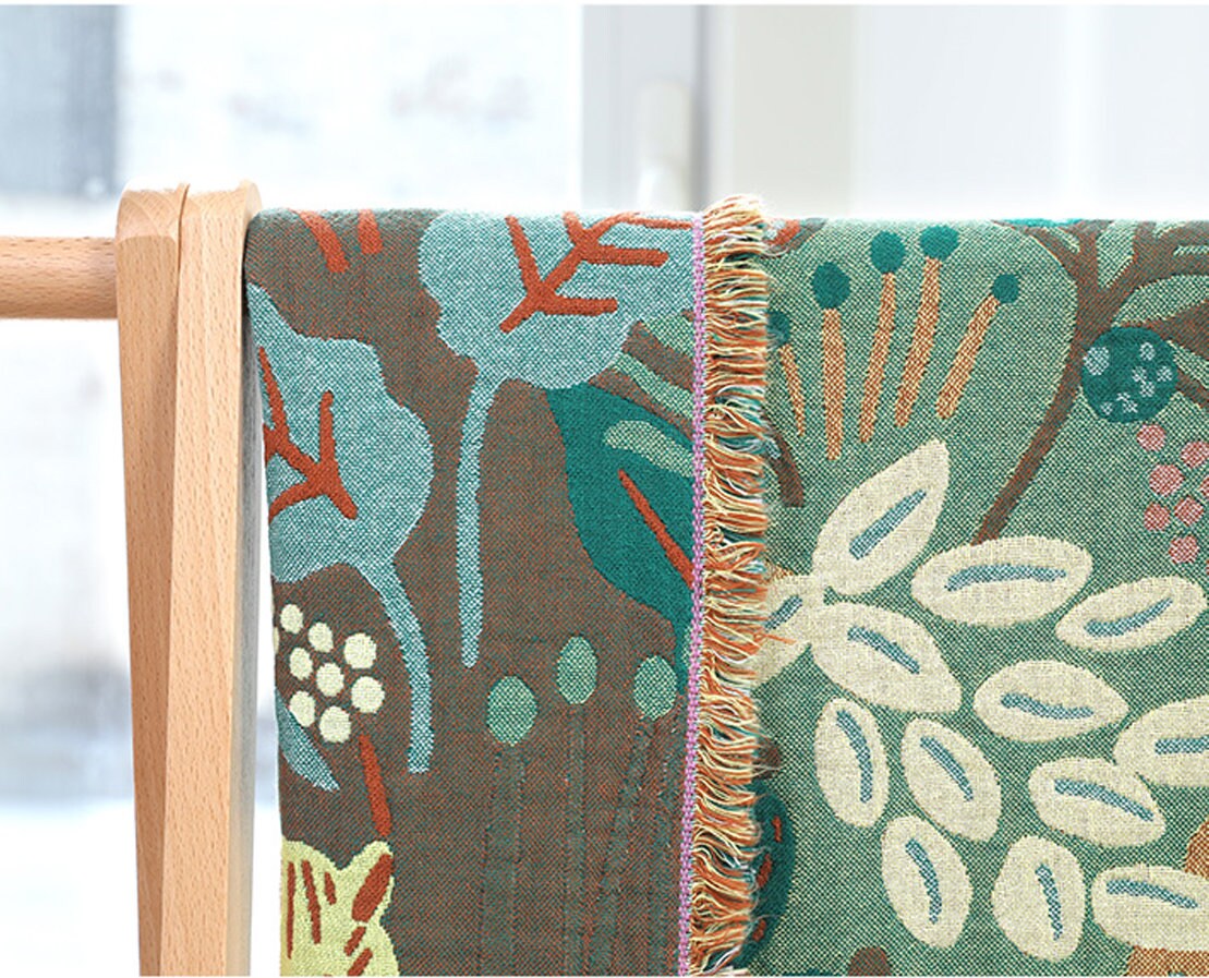 Forest Tiger 6 Layers Cotton Throw Bed Cover 100% cotton Muslin Sofa Throw Boho Decor, Jacquard Bed Throw Blanket, Housewarming gift.