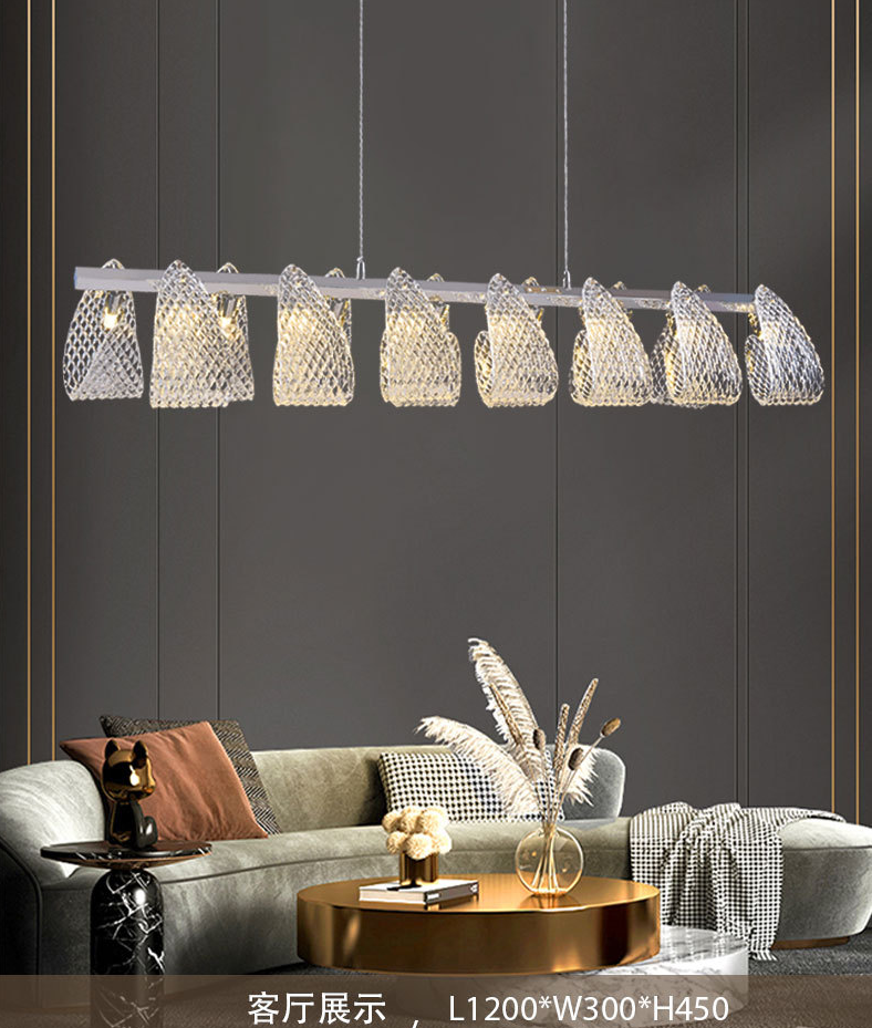 Glass Linear Chandelier - Small: L 85cm x 30cm x H45cm / L33.5″ x 11.8'' x 17.7''/ 10Lights is backordered and will ship as soon as it is back in stock.