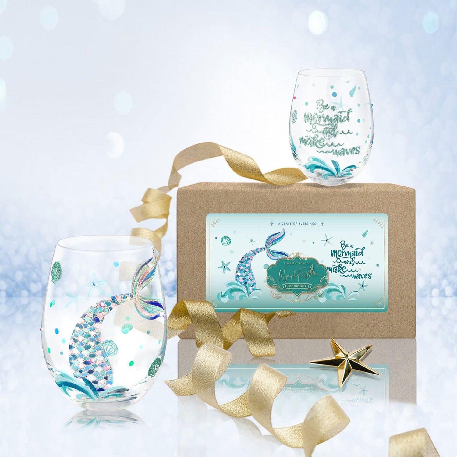 Personalized Design: The pattern on our stemless wine glass is originally designed by NymphFable's design team, hand painted mermaid looks charming and mysterious, it's perfect gift for festival, engagement, wedding, birthday, graduation, housewarming, etc.