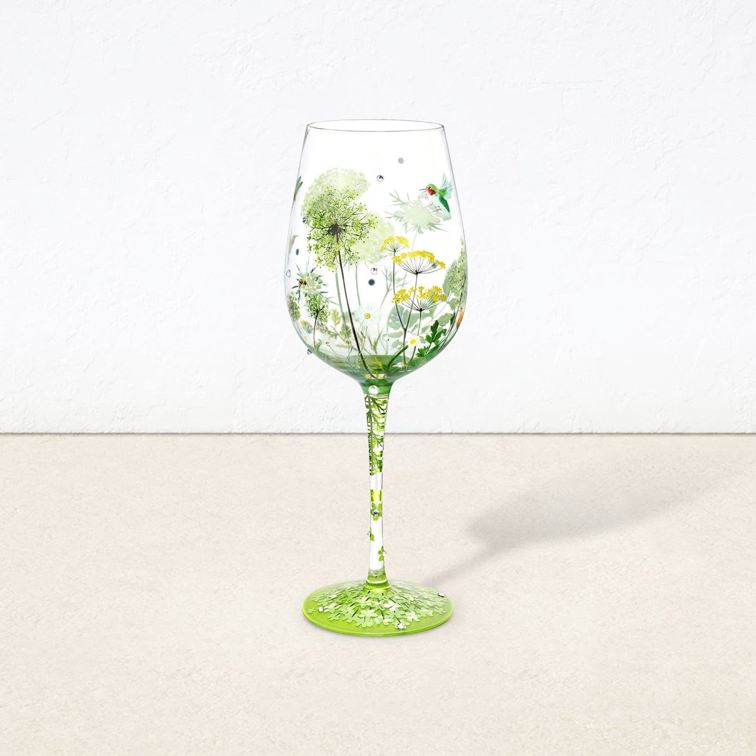 Hand-painted Dandelion Wine Glass is backordered and will ship as soon as it is back in stock.