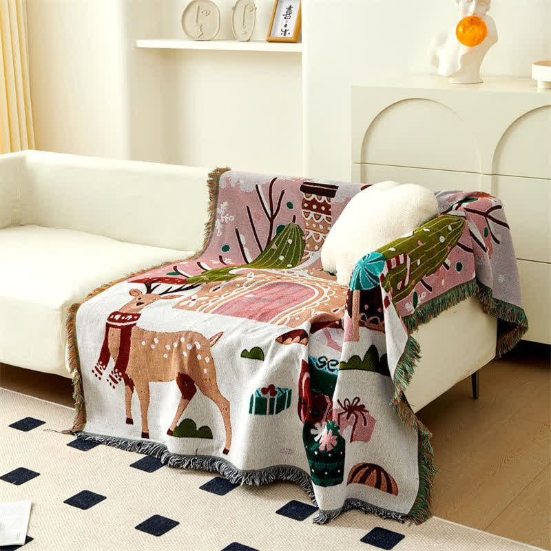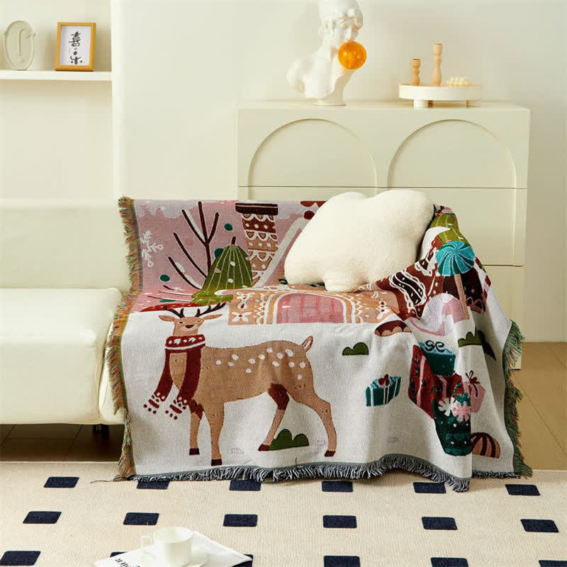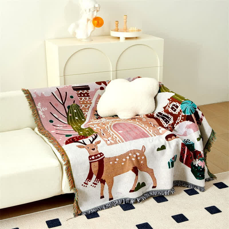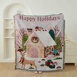 "Happy Holiday" Christmas Elk Tassel Blanket