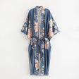 Kimono Boho Vintage Blue Peacock Print Sashes Women Bohemian V Neck Batwing Sleeves Happy Short Robe Kimono Jacket,Gift For Her
