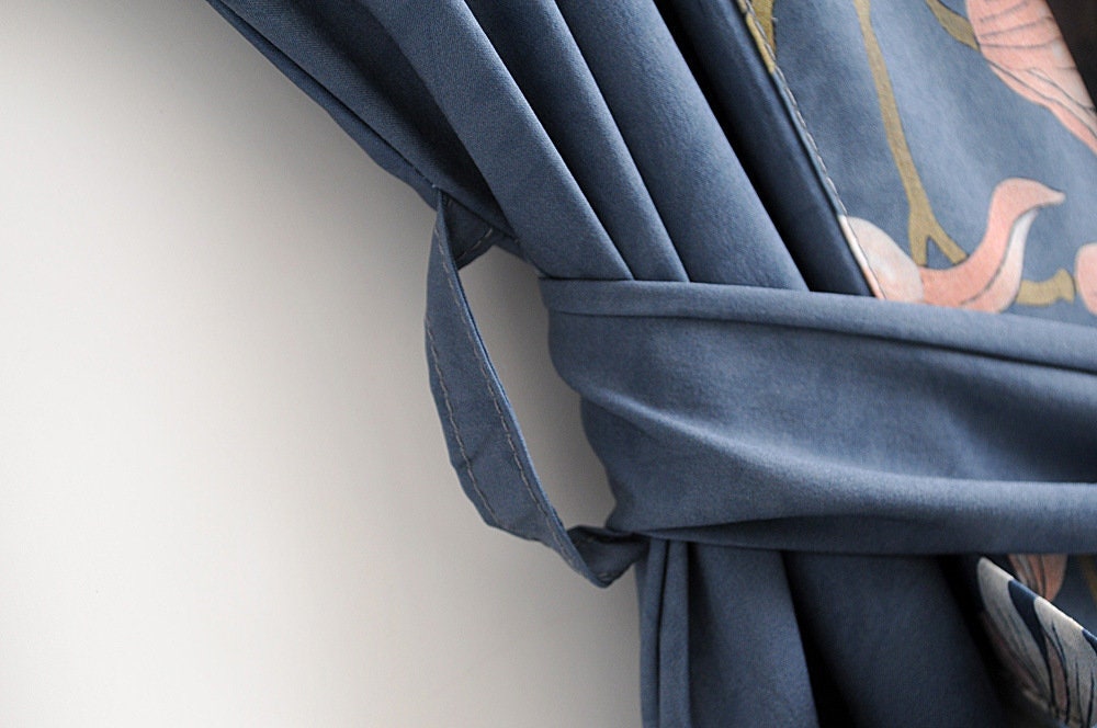 Kimono Boho Vintage Blue Peacock Print Sashes Women Bohemian V Neck Batwing Sleeves Happy Short Robe Kimono Jacket,Gift For Her - Size S is backordered and will ship as soon as it is back in stock.