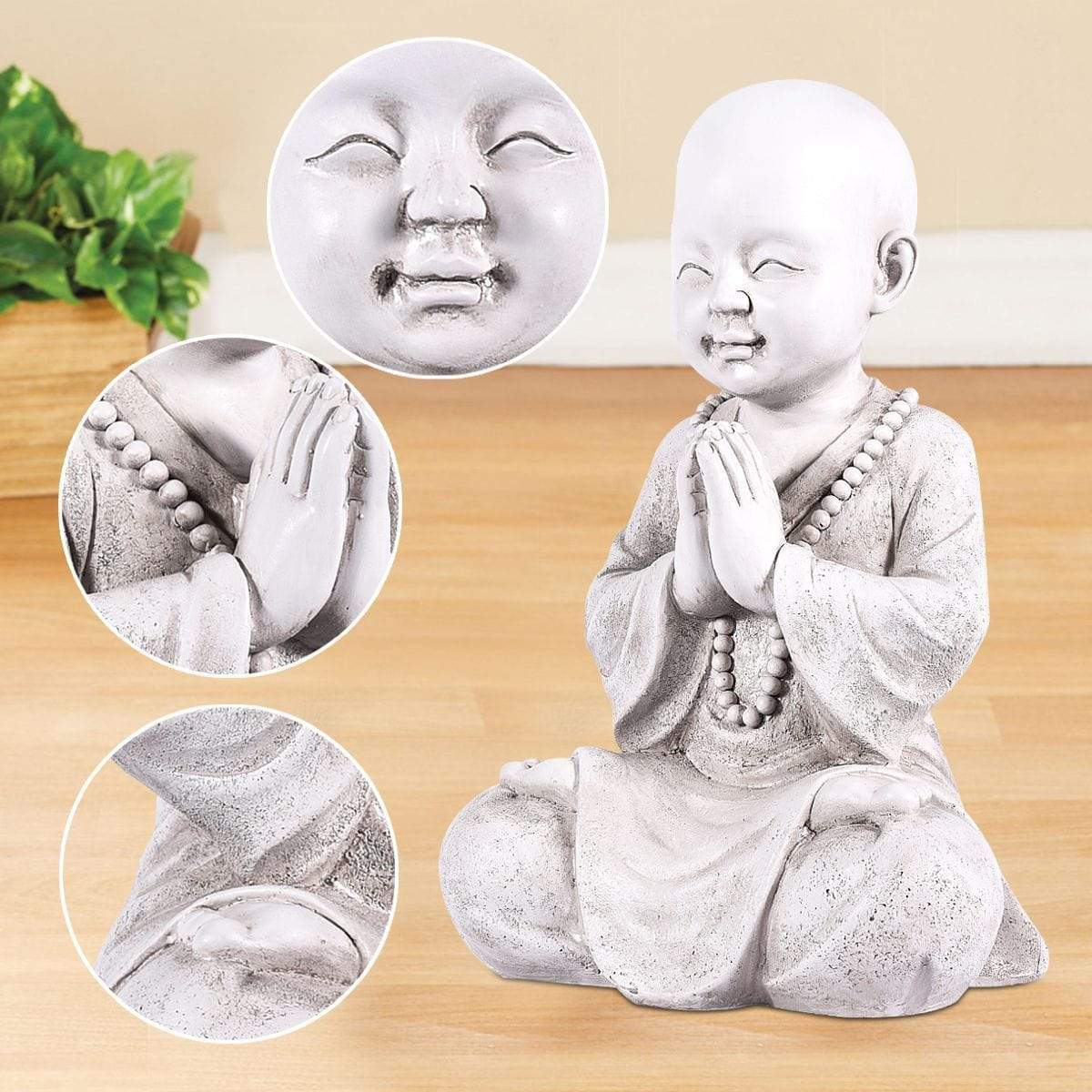 - Buddhist Statue Decorations: This Baby Buddha is a miracle. The peaceful Buddhist nature of this Oriental sculpture lends its quiet countenance to a religious home alter or outside garden sanctuary.