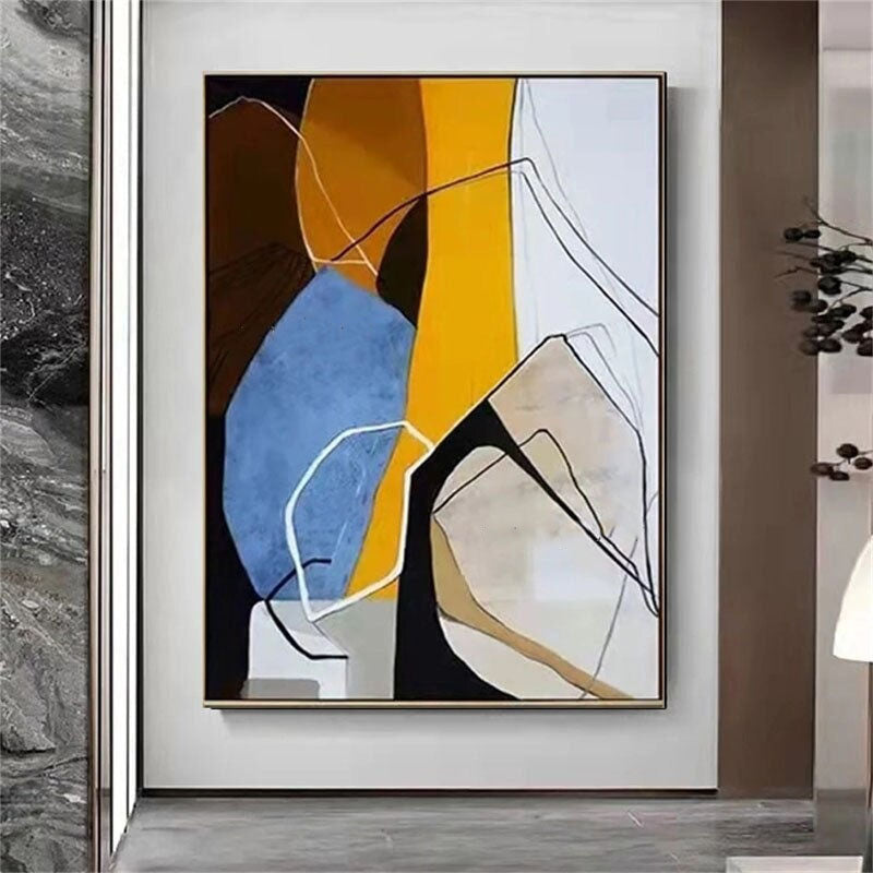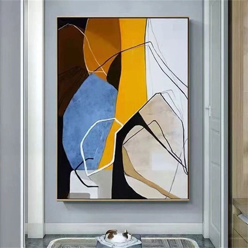 Bold colors are embraced in a swirl of modern art. The abstract design gives any space a modern art gallery feel. This vibrant hand painted canvas will make any space a center of attention.