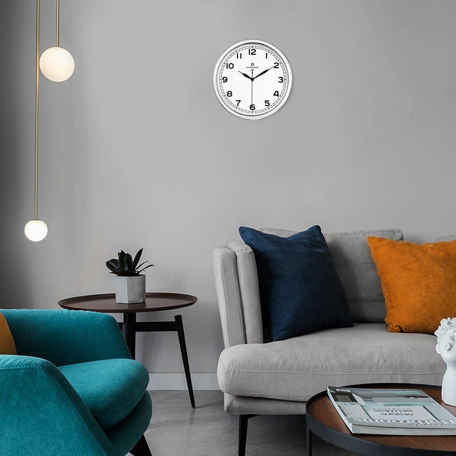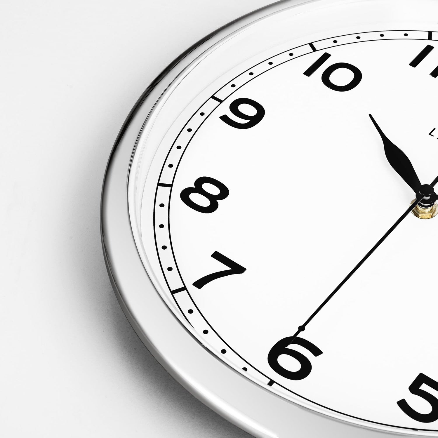 Keep track of the time while also adding a touch of modern style to your space with this essential wall clock. Classic silver frame, neat Arabic numbers with three elegant hands against dial face create easy viewing from any corner of your room.