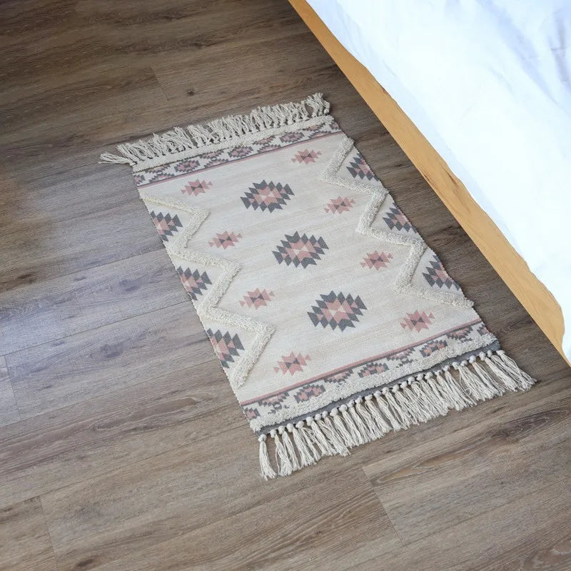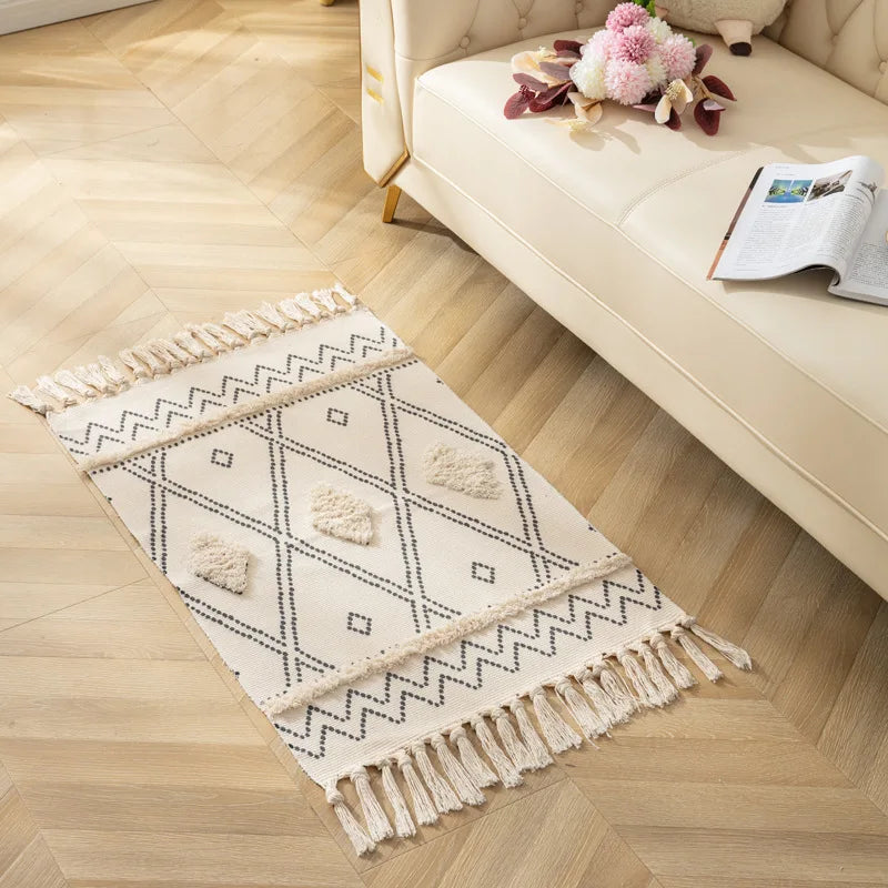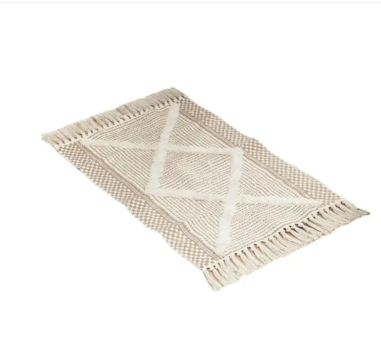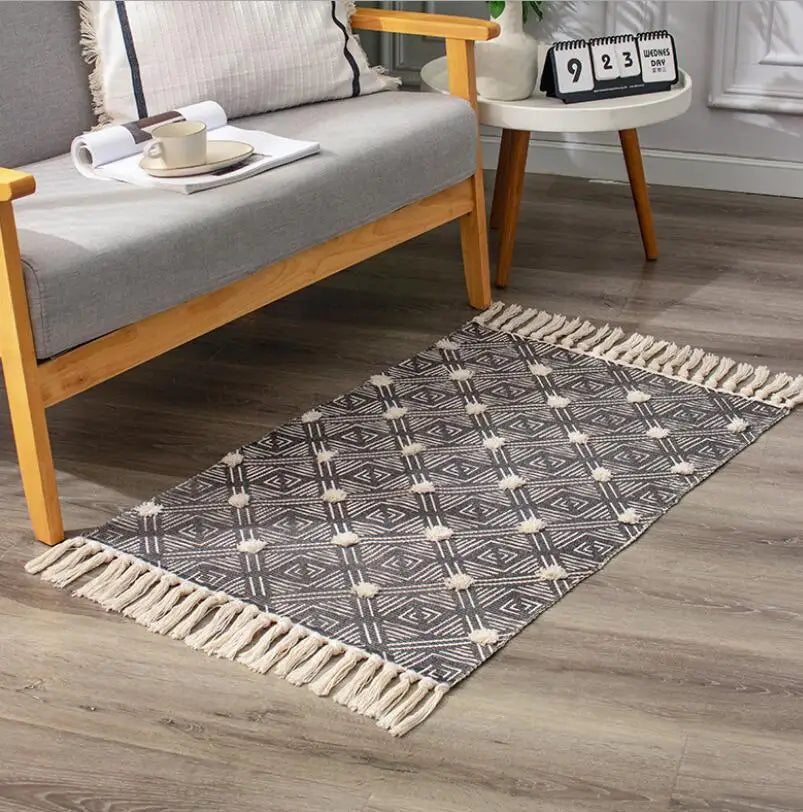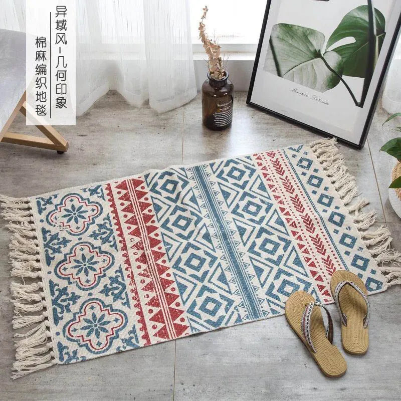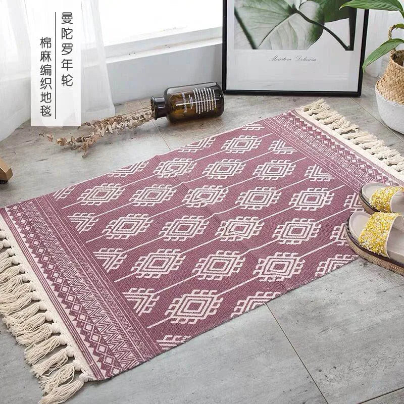 Retro Bohemia Hand Woven Cotton Linen Carpet Tassel Rug Floor Mat Tapestry Decorative Blanket Home Decor
