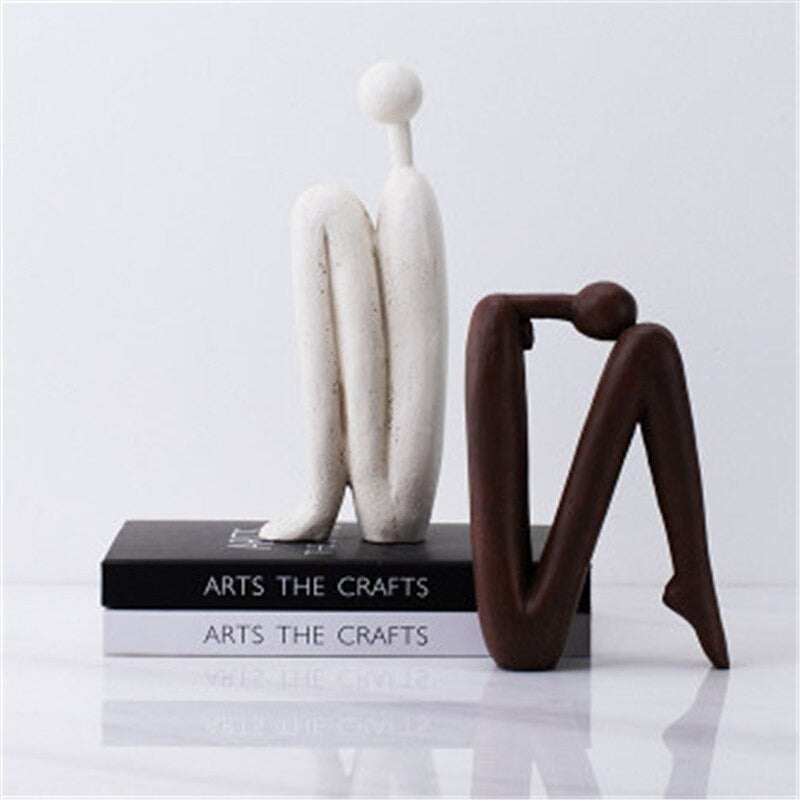 Embrace the simplistic beauty of these sitting statues. Each one is posed in a unique sitting pose of modern serenity. Pair them together to use as bookends or use one in any space to give it an art gallery feel.