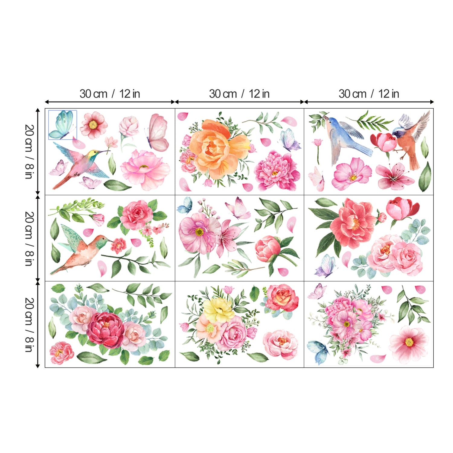 This watercolor flower window decal is designed with pink rose and peony together with cute birds, which is very suitable for decorating glass panels, patio sliding glass doors, veranda doors or bay windows.