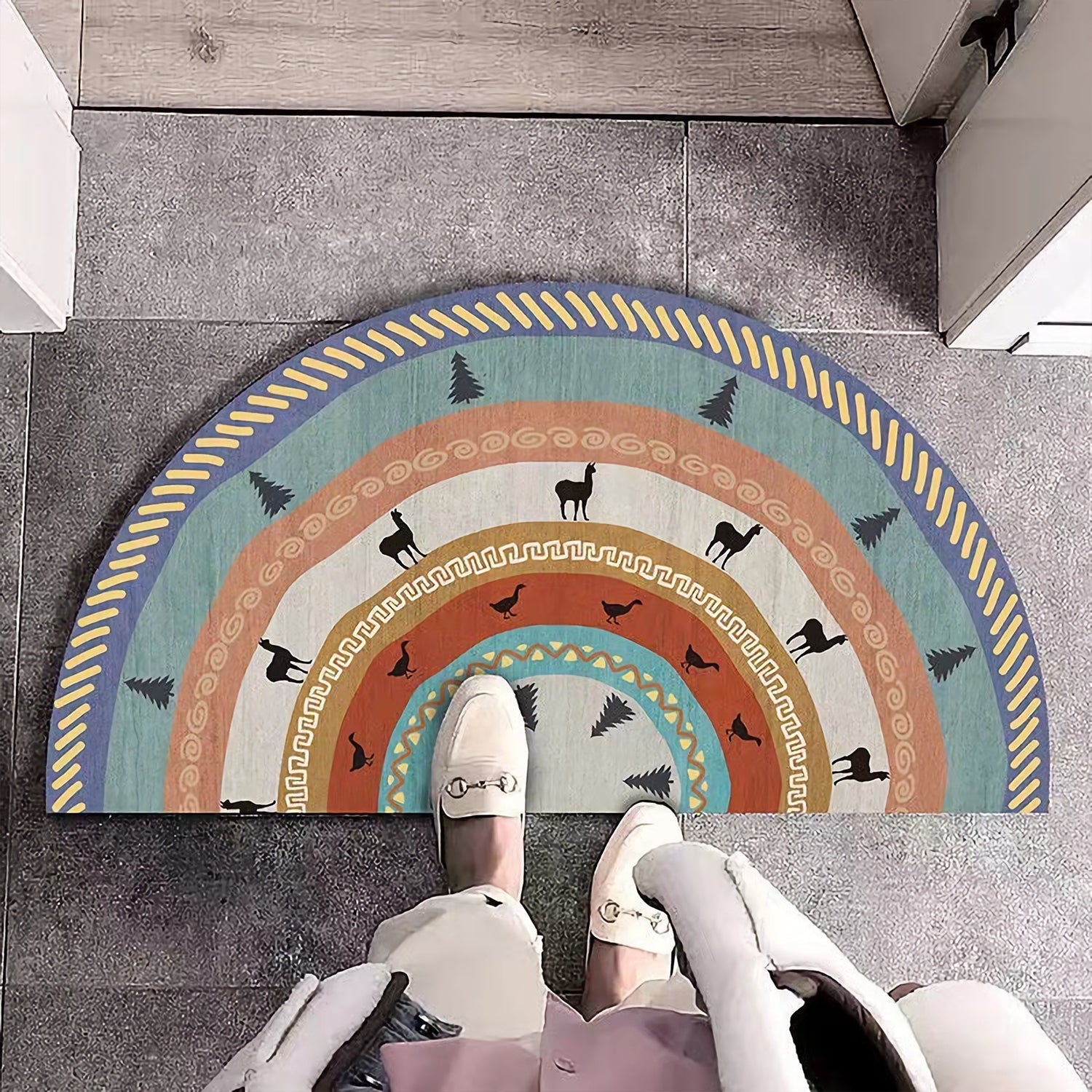 Ethnic Style Semi Circular Rug - Blue is backordered and will ship as soon as it is back in stock.