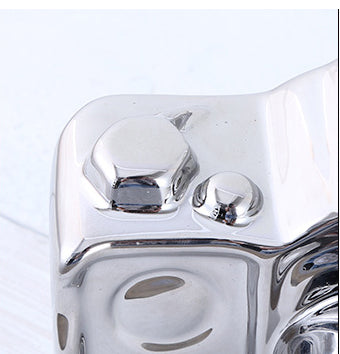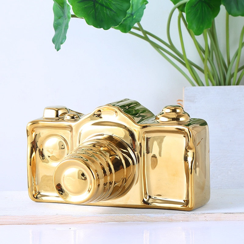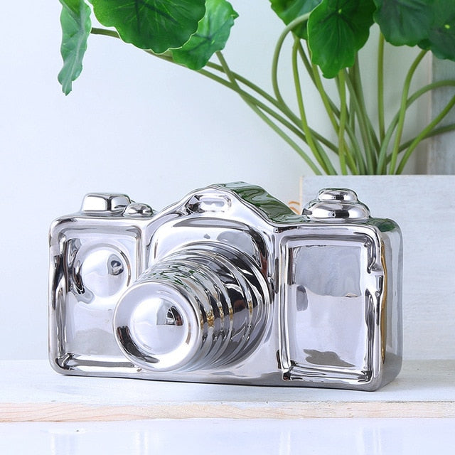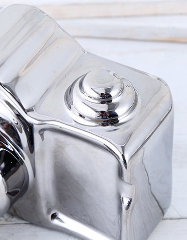 Enjoy the whimsical look of cameras captured in the art of ceramic. The cameras come in gold and silver. The intricate detail of these “cameras” will bring a hint of fun to any space. Enjoy them alone or paired together.