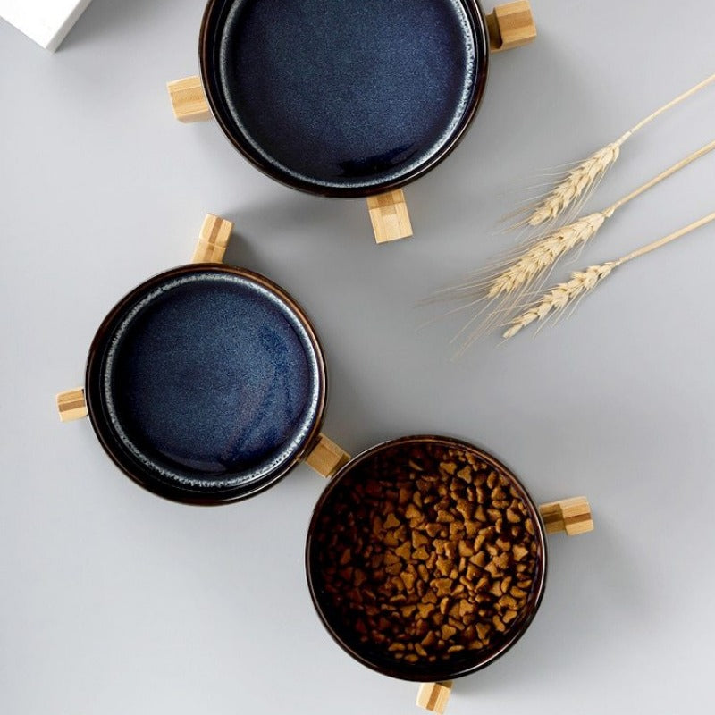 The Mystic Mountain Ceramic Pet Food Bowl with Stand