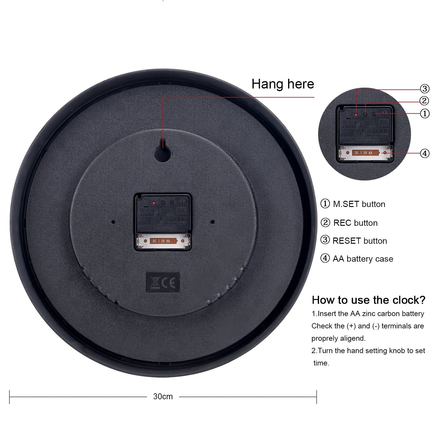 Unlike paper-made 3D numerals, the 3D numbers on this classic wall clock are made integrally molded which makes it in high-quality performance. Easy to read the current temperature and humidity. Easy to read with large Arabic numerals. Easy to install, just hang the clock in the desired location using a hook.